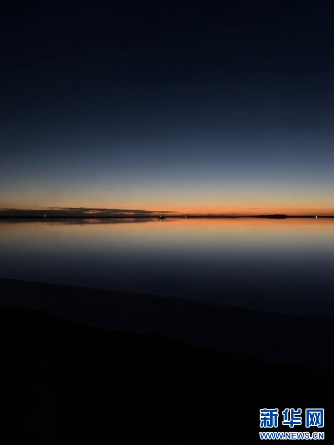 傍晚时分的察尔汗盐湖。新华网 鱼昊 摄