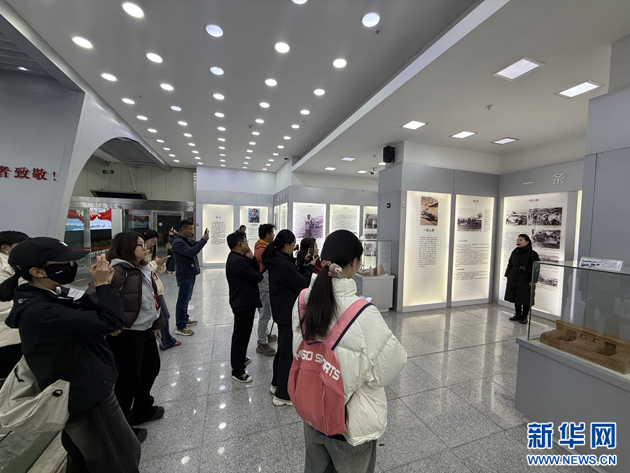 采访团在长江源村村史馆参观。新华网 鱼昊 摄
