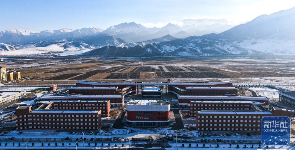 这是位于青海省海北藏族自治州门源回族自治县,由山东省和中粮集团援建的浩门镇高级中学(12月24日摄,无人机照片)。